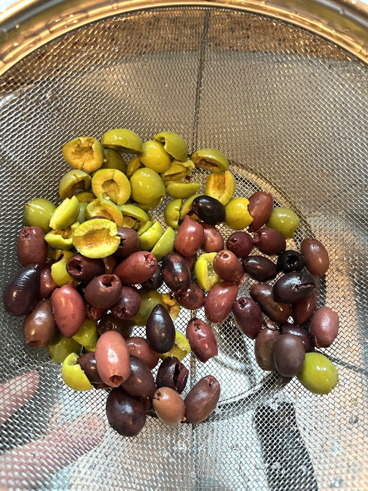 Rinsing the olives well really helps keep the salt down, which is an element I really love about this dish.